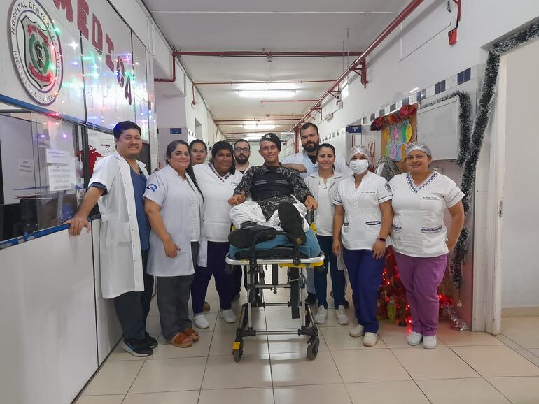 Después de una complicada serie de intervenciones quirúrgicas en el Hospital de Policía de Rigoberto Caballero, logró salir de alta el suboficial ayudante Claudio Fernández (22) quien integra las filas del grupo Lince.