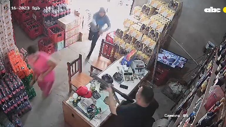 El propietario del comercio, Gonzalo Melgarejo (39), se percata de lo sucedido y logra sacar una escopeta, con la que recibe al delincuente.