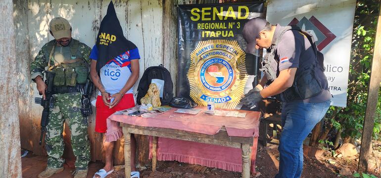 En el procedimiento realizado por los agentes de la Senad fue detenido Adriano Javier Lezcano Zarza (27), quien es oriundo del distrito de Alto Verá, de Itapúa.