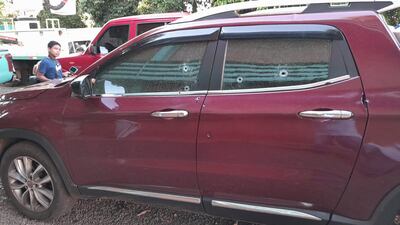 Su camioneta presenta alrededor de 11 impactos de bala como resultado del ataque.