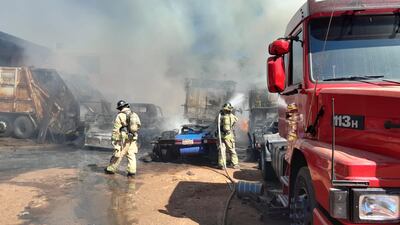El incendio se registró aproximadamente a las 9:50 en un taller mecánico y metalúrgico denominado “Chávez”, del barrio San Jorge de San Antonio. Según el reporte, se quemaron al menos tres camiones y los testigos reportaron una explosión previa.