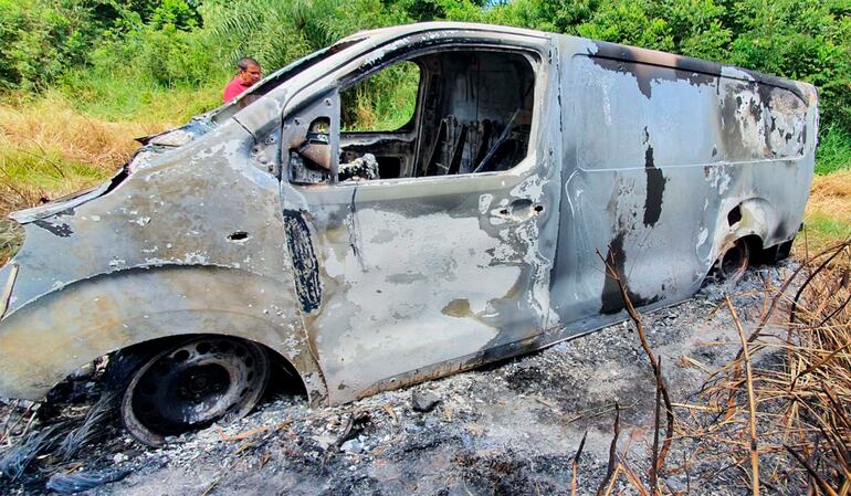 El rodado fue localizado completamente quemado en una zona descampada del kilómetro 16, lado Acaray, a 5.000 metros de la Ruta PY02, en el distrito de Minga Guazú, departamento de Alto Paraná.
