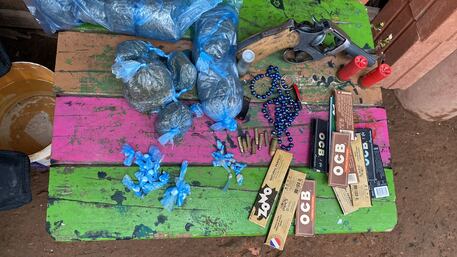 En las viviendas lograron incautar dos armas de fuego y sus cartuchos, cuchillos, teléfonos y dosis de marihuana, crack y cocaína que estaban listas para la distribución. También requisaron dos banderas de hinchadas: una de Cerro Porteño y otra del Club Independiente.