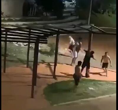 Luego, todo el grupo se dispersó y el supuesto herido también se alejó caminando.