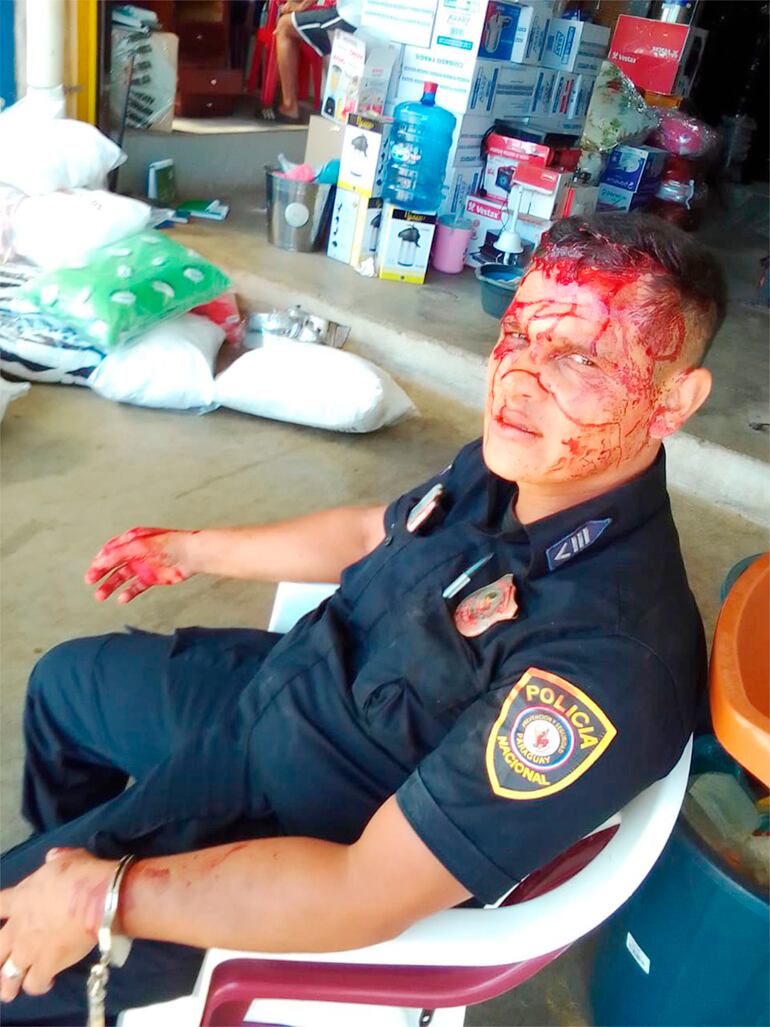 Los asaltantes agredieron brutalmente al policía, a quien incluso le robaron su arma, un revólver calibre 38.