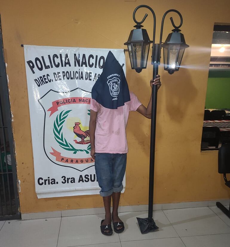 La aprehensión se dio cerca de las 4:30, sobre la calle Estrella, casi Alberdi, según el reporte de la Comisaría 3ª de Asunción. El sospechoso fue demorado cuando iba camino al barrio Ricardo Brugada y tenía en sus hombros una farola. Fue aprehendido por un agente policial que se encontraba de guardia en esa zona.
