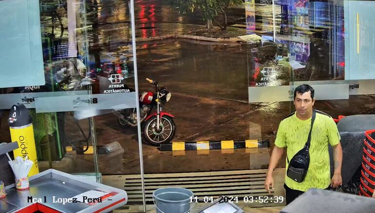 El informe de la Comisaría 3ª indica que el hombre llegó a bordo de una motocicleta y llevaba puesto una remera de color verde y short negro. Luego de cargar el celular en su bolsa de compras y de pagar por ellas, se retiró del local.