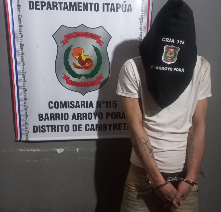 Denis Gabriel Martínez Ponillaux (30), alias Lagarto, fue aprehendido esta madrugada a las 4:30 en la vía pública del barrio Arroyo Porá del distrito de Cambyretá, en Itapúa, por agentes de la Comisaría 115ª jurisdiccional. El hombre fue sindicado como uno de los autores de un robo perpetrado minutos antes en una estación de servicio, ubicada sobre la ruta PY06 en la mencionada localidad.