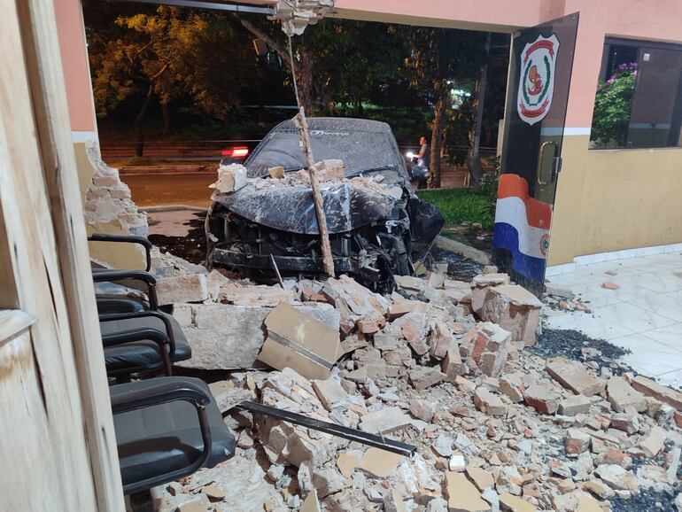 Según informó el oficial Luciano Colmán de la mencionada comisaría, el conductor, identificado como Juan Godoy, de 31 años, perdió el control de su vehículo al llegar al cruce de la avenida Brasilia con su intersección con Artigas, impactando frontalmente contra la pared de la sede policial.