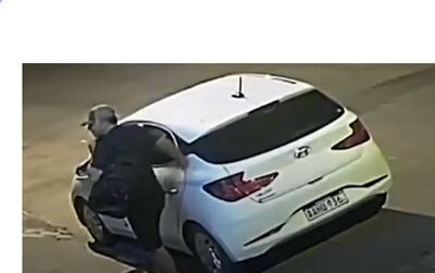 En el momento que bajó del auto color blanco Hyundai HB 20, la cara del delincuente se distingue levemente. Esta situación podría identificarlo mediante un acercamiento, pues recién se colocó el barbijo cuando estaba camino a la bodega.