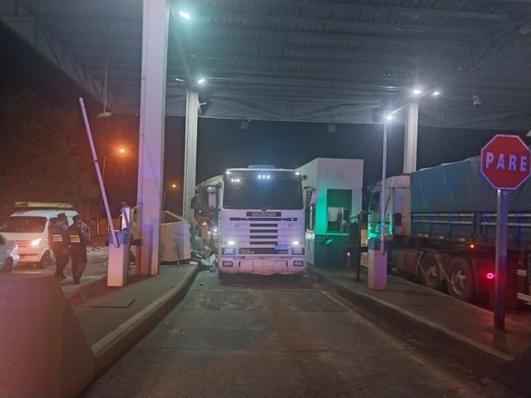 El semirremolque de un tracto camión que cruzaba por el peaje del km 27 de la ruta PY06, en el distrito de Santísima Trinidad del departamento de Itapúa, rozó y provocó el derrumbe de una de las casetas. El accidente se produjo esta tarde cerca de las 18:00, según el informe de los agentes de la comisaría 30ª jurisdiccional. No se registraron heridos tras el aparatoso incidente.