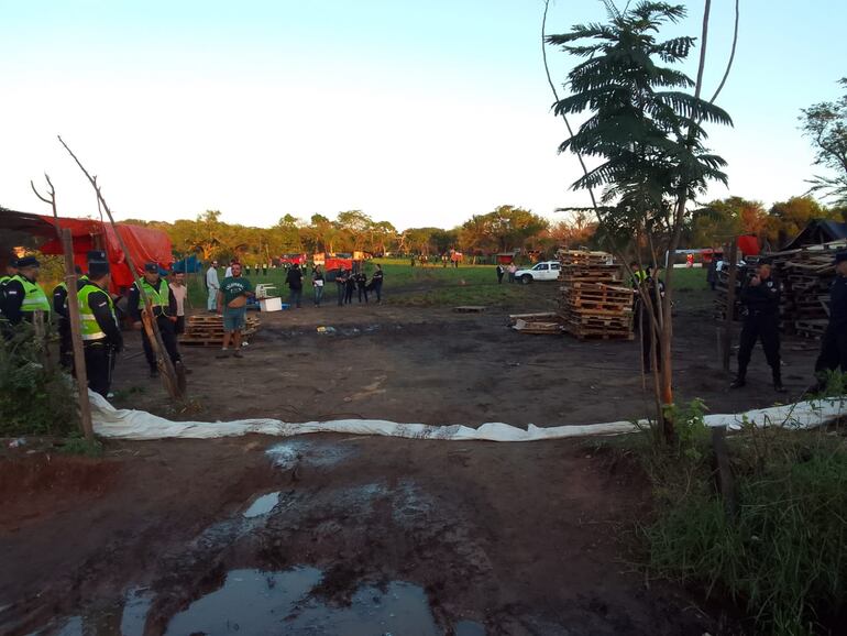 La Policía detuvo esta mañana a Víctor Ramón Meza Caballero (40), María del Carmen Delgado Leguizamón (47), Gustavo Fernández Ledesma (31), Miguel Andrés Cardozo Ruiz Díaz (24) y Jessica Ramona Benítez Zárate (38) por la ocupación de una propiedad ubicada en la compañía Tarumandy de Luque.