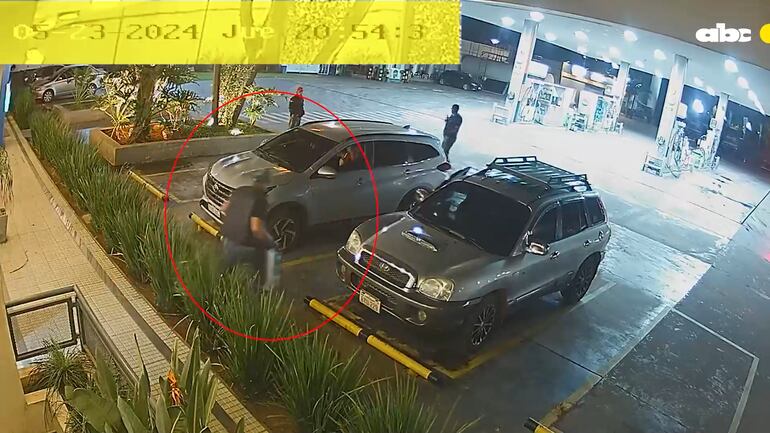 En las imágenes de circuito cerrado se ve cuando ingresa al estacionamiento una camioneta Kía Sportage y estaciona al lado de otro vehículo en el que se encontraba una persona al volante, aparentemente esperando algo o a alguien.
