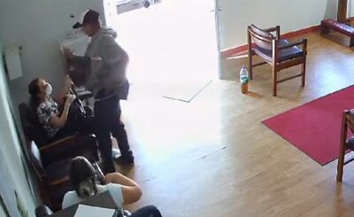 El momento del asalto fue captado por una cámara de circuito cerrado. Según el video difundido, dos mujeres estaban rezando en la capilla de adoración al Santísimo Sacramento cuando ingresó un hombre vestido con un quepis, un abrigo gris y pantalones oscuros, portando una botella aparentemente de gaseosa. Las mujeres continuaron rezando mientras el hombre observaba el altar y analizaba la situación. Treinta segundos después sacó un cuchillo de su cintura y se acercó a una de las mujeres.
