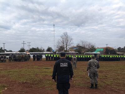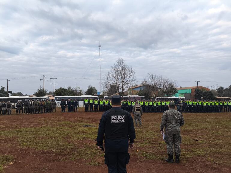 Para el desarrollo del desalojo del asentamiento Arapoty, ubicado en la compañía Pirapey del distrito itapuense de Edelira, la Dirección Departamental de la Policía Nacional, a cargo del Comisario General Juan Agüero Ríos, desplegó entre 500 y 600 efectivos policiales.