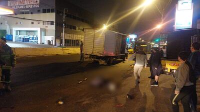 Según el conductor del primer vehículo, un Toyota Premio, este fue chocado en la parte posterior por la motocicleta. Al caer sus ocupantes, el tercer vehículo involucrado, un camión de la marca Jac, no pudo evitar arrollarlos.