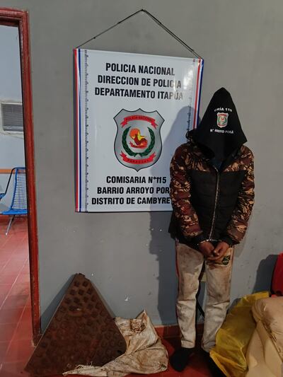 Agentes de la Comisaría 115ª aprehendieron a un hombre en flagrancia, mientras hurtaba la tapa de hierro del desagüe cloacal, propiedad de la Empresa de Servicios Sanitarios del Paraguay (ESSAP).