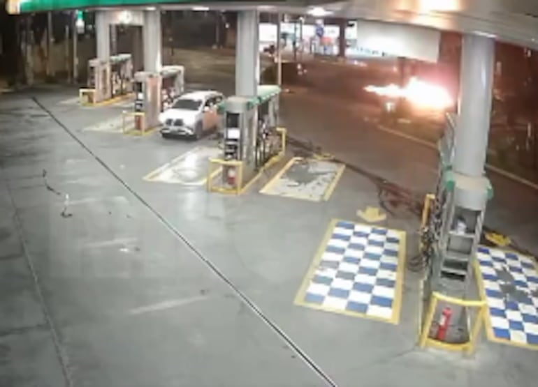 Esta tarde se dio a conocer el video del percance, en el cual se observa cuando el automóvil choca contra la motocicleta, que rápidamente estalló en llamas y derrapó. Un trabajador de la estación de servicio ubicada en la esquina no dudó en correr a buscar el extintor para apagar el incendio, mientras seguía el tránsito vehicular en la zona.