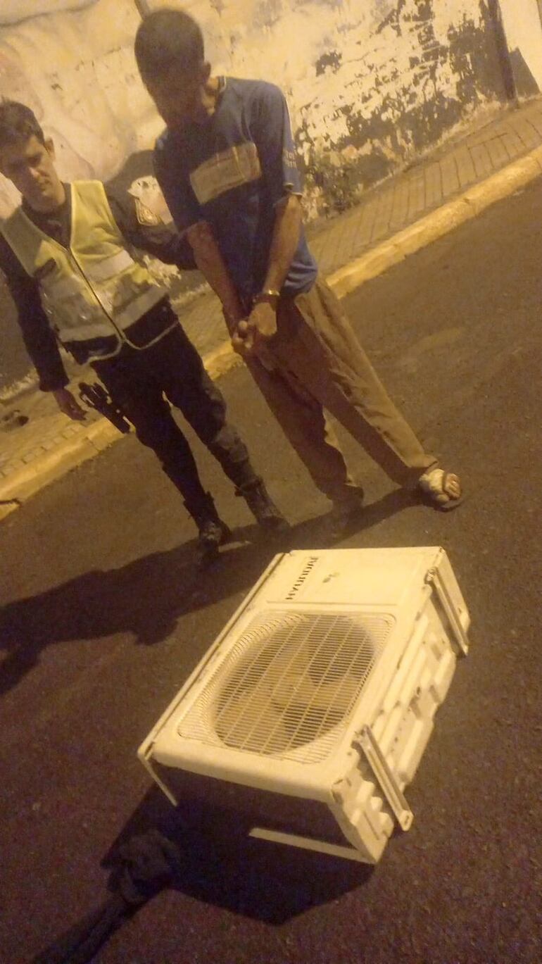 En horas de la madrugada, un ciudadano reportó a la Policía que un hombre se encontraba arrastrando un compresor de acondicionador de aire en las calles del centro de Asunción. Los agentes de la Comisaría 3ª acudieron a la zona indicada por el denunciante y luego de un recorrido encontraron al sospechoso.