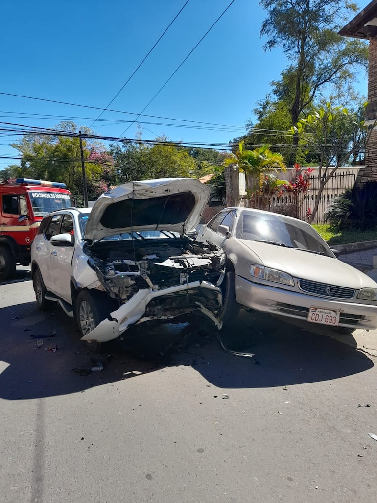 Según lo relatado por el voluntario Freddy Cristaldo, de la Compañía de Bomberos de Asunción, el accidente se produjo alrededor de las 10:30 de esta mañana cuando el Toyota Land Cruiser transitaba por la calle Mayor Bullo. Entretanto, el Toyota de color rojo circulaba por la calle Cerro Corá.