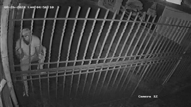 En las grabaciones se observa al ladrón trepar el portón de rejas del local para ingresar y luego salir de la misma forma con una estufa a cuestas.