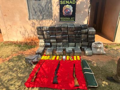 En el lugar fueron hallados paquetes de marihuana estibados y embalados, además de una escopeta y tres rifles, armas que probablemente se utilizaban para la custodia de cargas ilícitas como otros hechos delictivos.