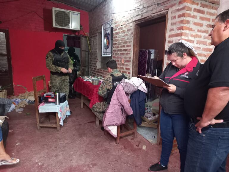 El allanamiento se llevó a cabo en una vivienda ubicada en la calle Batallón 40, casi Ruta Nacional 4. En el lugar se incautaron 15 dosis de cocaína (8,7 gramos), 3 dosis adicionales (1,7 gramos), cuatro teléfonos celulares y una importante suma de dinero en efectivo de baja denominación.