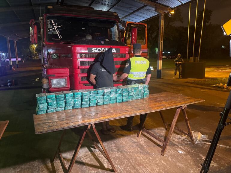 Las autoridades informaron que el conductor del camión, identificado como Migdonio Martínez Portillo (53), domiciliado en el barrio San Blas de Pedro Juan Caballero, fue detenido y permanece en la base policial junto con la droga incautada.