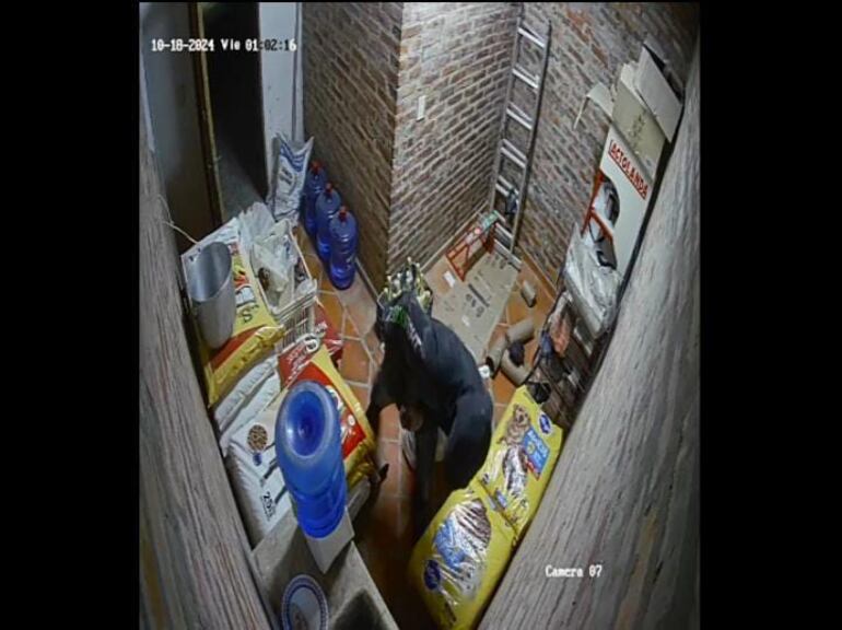 Las cámaras de seguridad del local captaron cómo los dos hombres hicieron un agujero en la pared del depósito para acceder al interior del negocio. En menos de 30 minutos, se llevaron una notebook HP gris, una hidrolavadora Karcher, una balanza electrónica, varias cajas de bebidas alcohólicas, y unos G 300.000 en monedas, entre otros artículos como un termo y ropa.