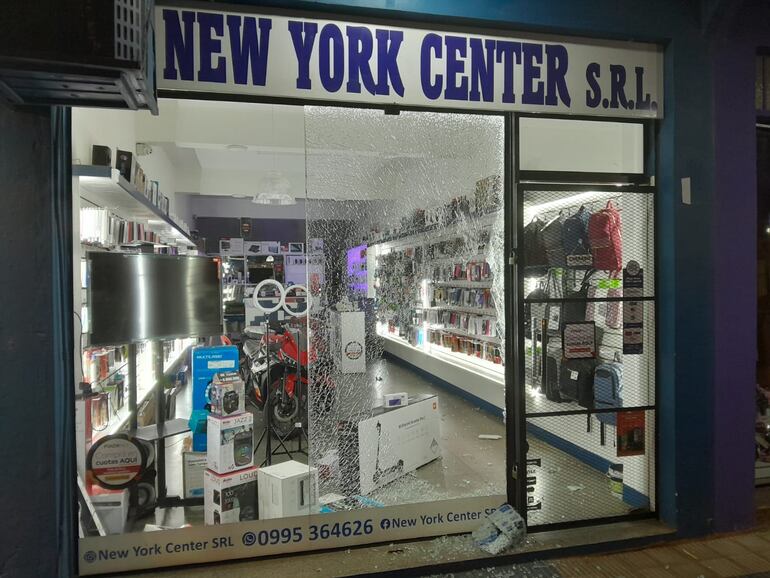 Durante la madrugada de este martes, dos hombres llegaron en motocicleta hasta un local de venta de aparatos electrónicos con el propósito de hurtar objetos de valor. Uno de ellos rompió la puerta de vidrio templado para ingresar al negocio, denominado New York Center, ubicado sobre la calle Juan León Mallorquín, casi 14 de Mayo, en el microcentro de Encarnación.