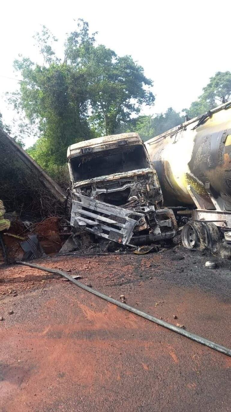 Esta mañana, vecinos de Caazapá reportaron el choque de un camión cisterna en la zona conocida como Fátima, compañía Boquerón. Según los datos compartidos por varios medios locales, bomberos voluntarios lograron controlar el fuego, pero ya encontraron al chofer muerto en la cabina, calcinado.