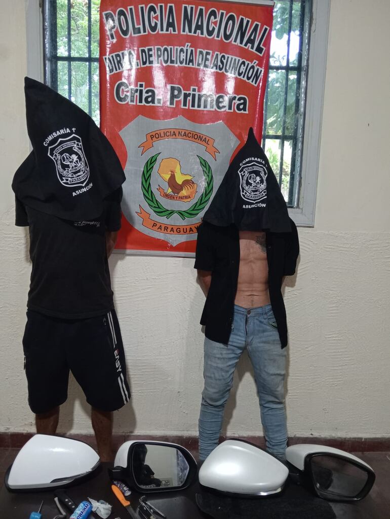 En la tarde del miércoles dos hombres con extensos antecedentes fueron aprehendidos en inmediaciones de las calles Hernandarias y Palma, en el barrio Dr. Francia, de Asunción. Los detenidos son sospechosos de haber hurtado accesorios de vehículos en la zona, según informó la Policía Nacional.