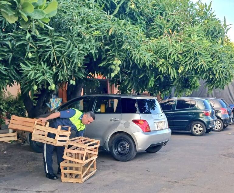 Agentes de la Dirección de Tránsito de la Municipalidad de Asunción retiraron las cajas de madera y otros objetos que son utilizados por cuidacoches para reservar espacios para estacionamiento.