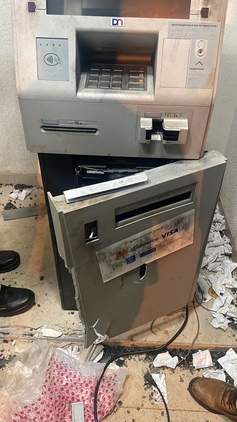 El comisario refirió que “a simple vista” los delincuentes no se habrían alzado con dinero de la expendedora porque esta se encuentra en el mismo sitio, pero resaltó que ello será recién confirmado tras una inspección técnica, así como también si se activó el sistema de entintado de billetes.