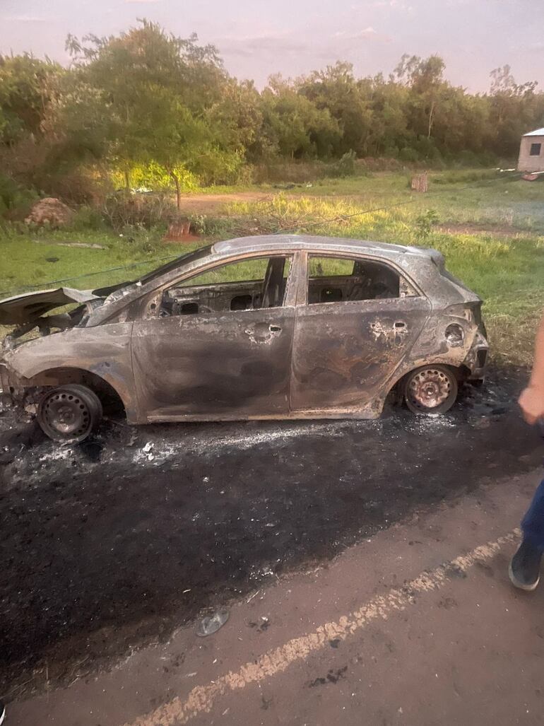 Los intervinientes de la comisaría mencionada informaron que, alrededor de las 23:30, recibieron un reporte telefónico anónimo con respecto al supuesto hecho de un accidente de tránsito e incineración de un vehículo abandonado, por lo que se trasladaron al sitio, ubicado a más de 10 kilómetros de la dependencia policial.