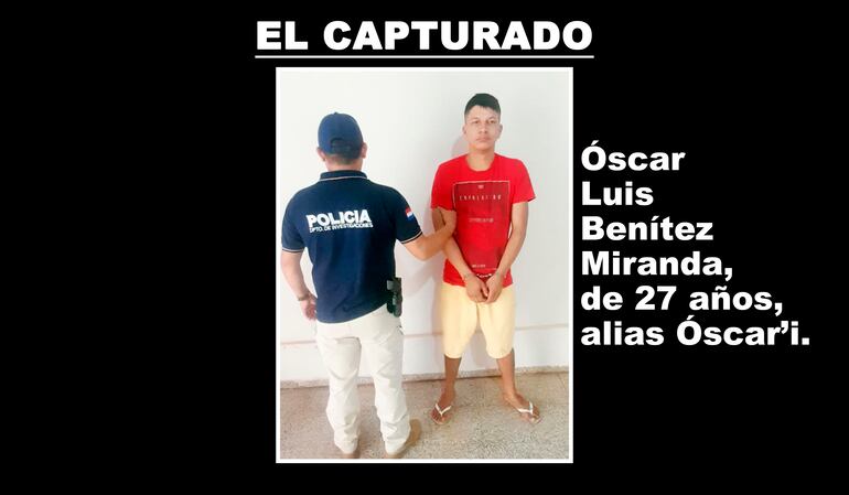 Se trata de Óscar Luis Benítez Miranda, de 27 años, alias Óscar’i, con varios antecedentes y cinco órdenes de captura pendientes, dos de ellas por robo agravado y las otras por homicidio doloso, narcotráfico y hurto agravado.