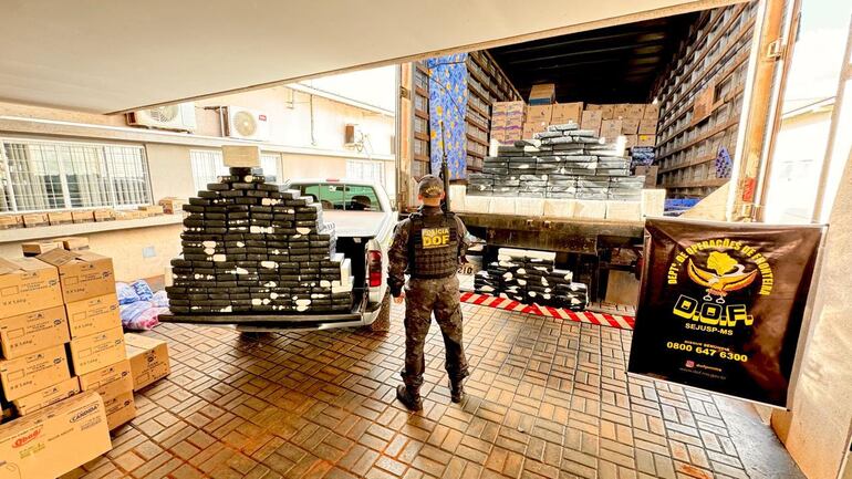La droga, que estaba prensada en varios volúmenes, fue hallada oculta entre cajas de mercancías en un camión estacionado junto a una camioneta Chevrolet S10. Durante la inspección, los policías confirmaron que el cargamento tenía como origen la ciudad de Ponta Porã, fronteriza con Pedro Juan Caballero, y como destino final Dourados.
