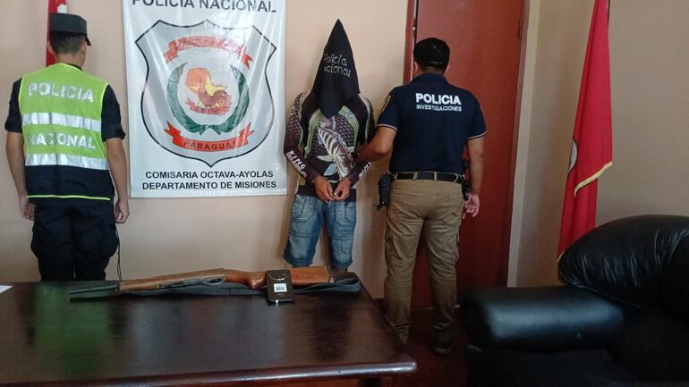 Tras su captura, reveló dónde tenía oculta el arma de fuego, tipo rifle calibre 22, sin número de serie visible. Estaba a unos 100 metros de la vivienda.