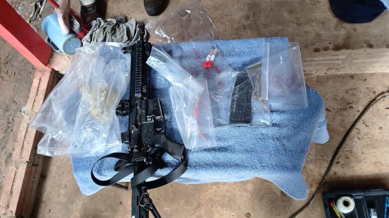 Los intervinientes hallaron en el domicilio allanado un fusil calibre 5,56, una escopeta calibre 12, teléfonos celulares, motocicletas, “walkie talkies”, entre otros elementos.