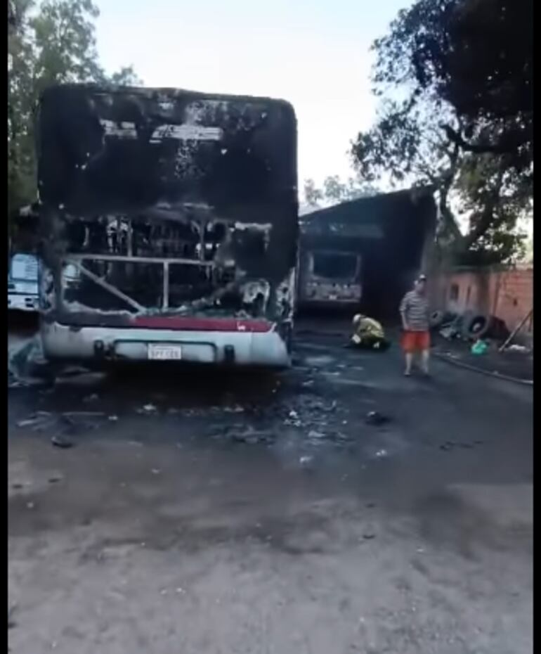 Los bomberos confirmaron que en total se incendiaron cinco unidades de transporte. Algunos de los buses estaban operativos, pero otros estaban parados, por trabajos de reparación.