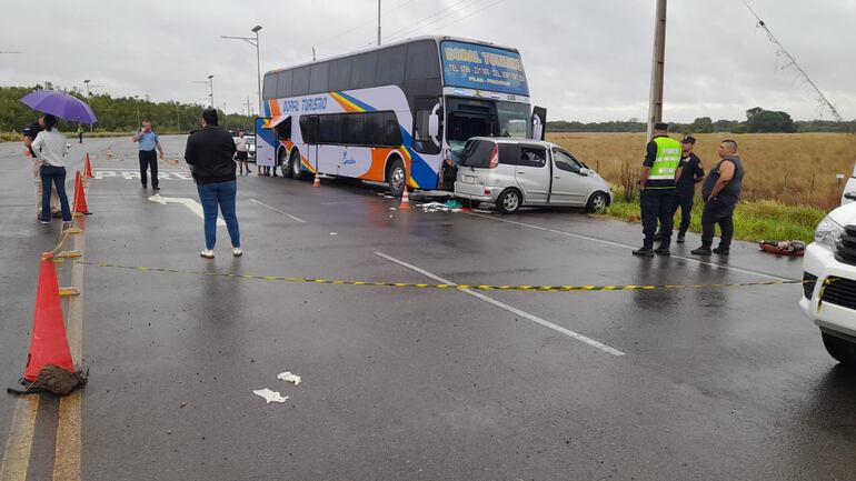 El siniestro se produjo alrededor de las 15:30, cuando un ómnibus de turismo (Doral) embistió a un vehículo Toyota tipo Funcargo, en el que viajaban Eleuterio Amarilla Espínola, quien conducía el rodado, y su esposa, Liliana Rosa Lezcano. Ambos perdieron la vida en el lugar. Otras dos ocupantes del automóvil, Andrea Soledad Amarilla Rosa y Alejandra Ramona Villasboa Ferreira, fueron trasladadas en estado grave al Hospital Regional de Pilar.