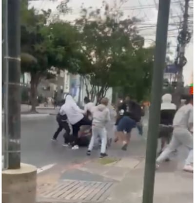 En redes se viralizó ayer el video de una brutal golpiza registrada en zona de Villa Morra, a la salida de una zona de discotecas. Fue víctima un joven, a quien se observa en el asfaltado mientras al menos otros ocho jóvenes lo patean y golpean.