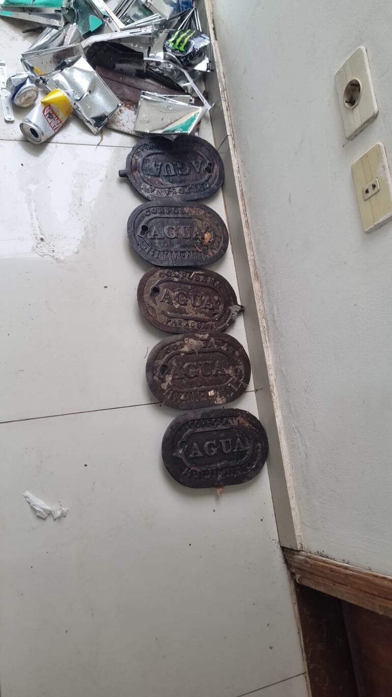 El agente reveló que el presunto adicto a estupefacientes tenía consigo una bolsa, en cuyo interior se hallaron cinco tapas metálicas de medidores de la Essap, entre otros elementos, que fueron incautados.