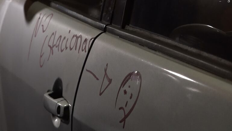 El automóvil fue hallado con pinturas de aerosol que indicaban la prohibición de estacionar, puesto que estaba obstaculizando el paso.