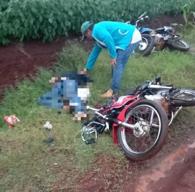 Agentes policiales de la Comisaría 28ª informaron sobre un siniestro vial con desenlace fatal que tuvo lugar la tarde de este domingo, a las 18:15, en un camino vecinal del barrio Natividad del distrito de Capitán Meza, en el departamento de Itapúa. Se trató de una colisión frontal entre motocicletas.