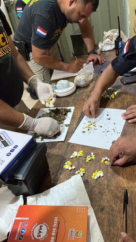El análisis primario de campo y el pesaje estuvieron a cargo del Departamento Especializado Contra el Narcotráfico y Delitos Conexos.