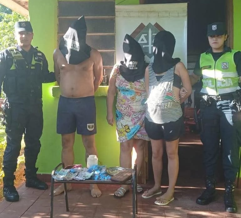 Fueron detenidos en esta residencia Lidia Cardozo de Oviedo (54), Carlos Ramón Oviedo Cardozo (30), alias “Tati”, con antecedentes por violencia familiar, y Andrea Yerutí Bogado (19). Los mismos fueron trasladados hasta la sede de la Comisaría Primera, a disposición de la fiscal.