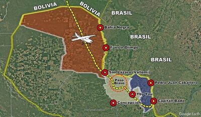 Literalmente, los aviones de combate del Estado paraguayo solo escoltaron el avión cargado con cocaína por espacio de unos 250 kilómetros hasta el punto donde finalmente aterrizó.