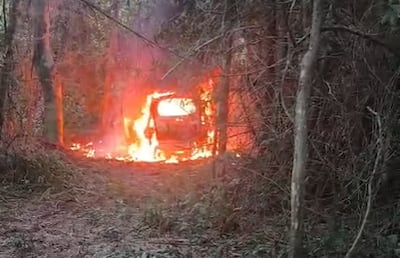 Verificaron la zona y hallaron el rodado de la víctima incinerado en el lugar. Presumen que fue Carmelo el autor y que posteriormente se fugó en esa zona boscosa. Los intervinientes realizan un operativo de búsqueda en conjunto con las comisarías aledañas.
