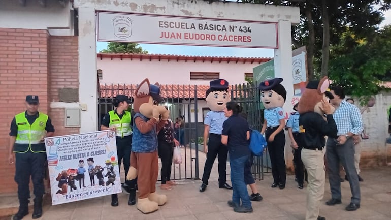 En la Escuela Juan Eudoro Cáceres, ubicada en el barrio San Pablo de Asunción, la comisaria María Achucarro explicó que el principal objetivo del operativo es fortalecer la prevención en entornos escolares y garantizar la seguridad de estudiantes y docentes desde el primer día de clases.